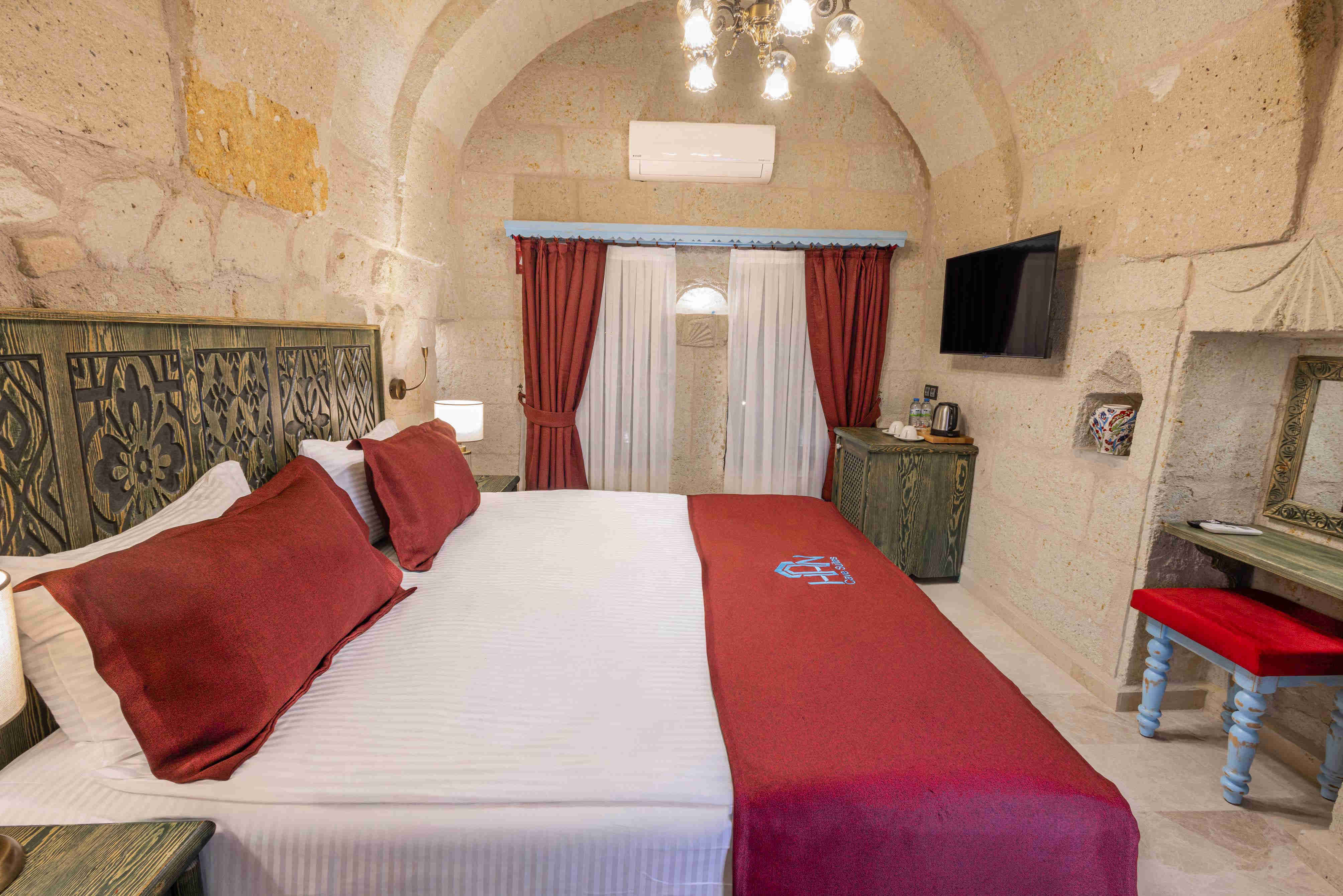 Our Standard Rooms are ideal for travelers seeking a simple yet comfortable experience. These rooms are designed with cozy, modern furnishings, including a plush double bed, private bathroom, and complimentary amenities like Wi-Fi and air conditioning. They provide everything you need for a restful stay after a long day of sightseeing in Cappadocia.
